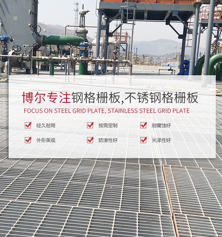博爾公司是國內現代化的鋼格柵板,不銹鋼格柵板,玻璃鋼格柵板,鋁格柵等格柵系列及格柵周邊衍生產品的大型專業生產廠家之一。本公司擁有現代化的生產設備及高質量管理和生產人員。志力為國家和世界源源不斷提供高質量、高性能產品。是各大型設計院及建造施工企業之指定友好合作伙伴。博爾公司培養和吸引技術和設計力量,高質量CAD及三維制圖為客戶量身訂做。集研發、設計、制作、包裝及運輸于一體,全力滿足不同客戶各類需求。